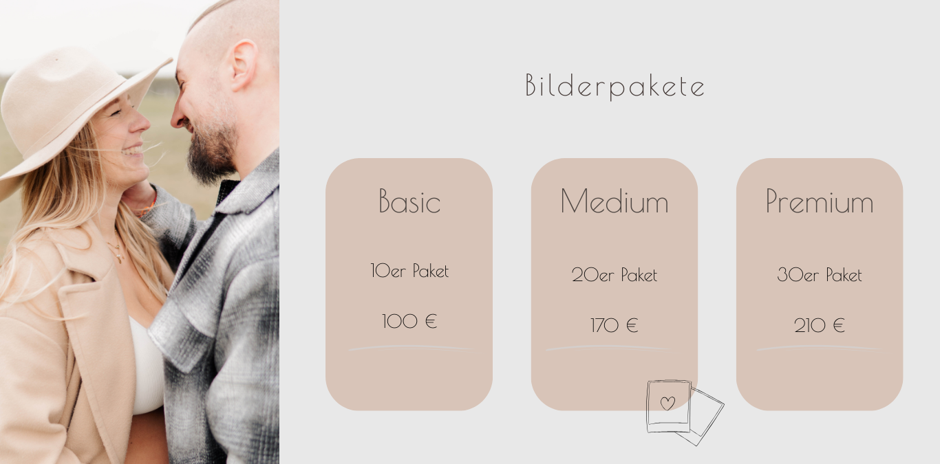 Hinweis: Mit dem Shootingpreis buchst du dein Fotoshooting. Welche und wieviele Lieblingsbilder du später auswählst, entscheidest du ganz flexibel selbst.